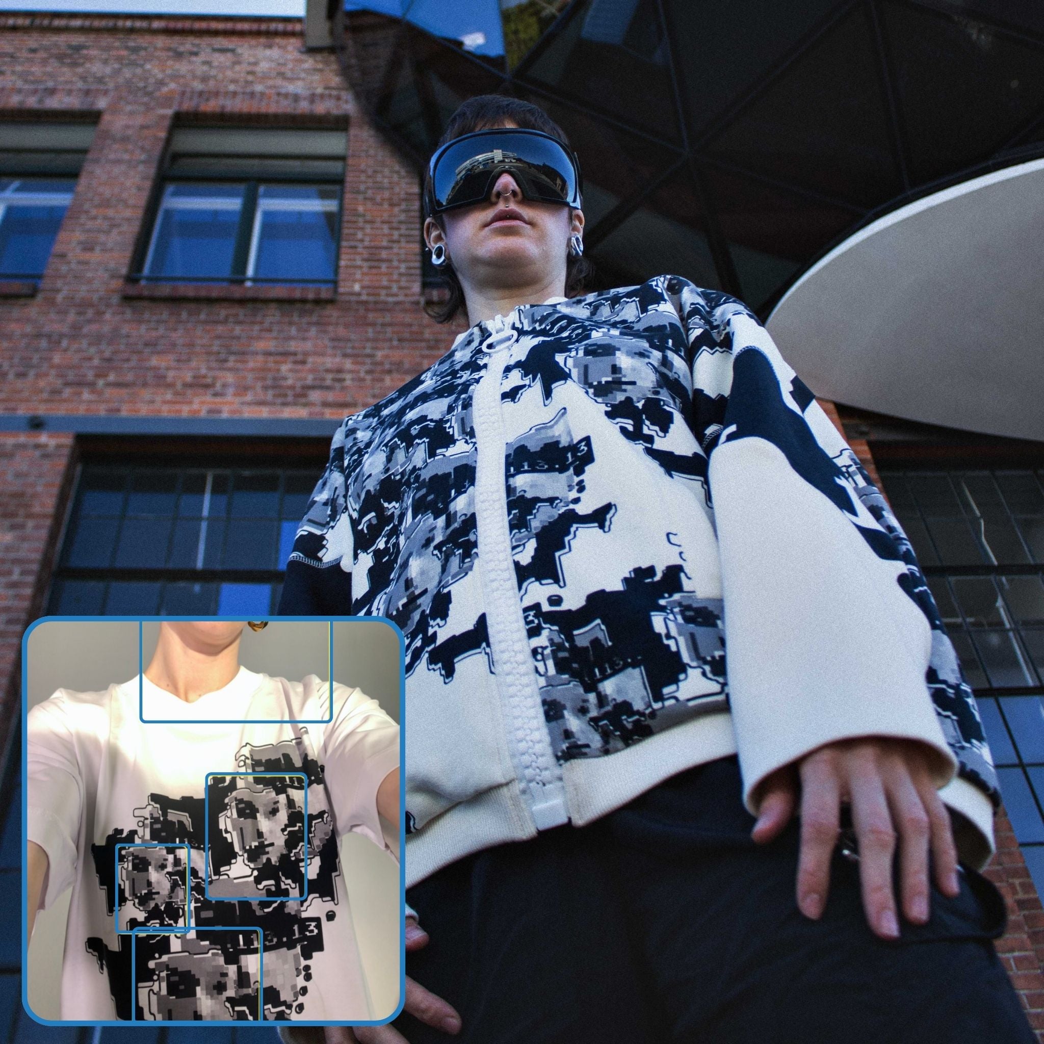 Die nächste Generation unseres Anti-Surveillance-Designs. Neue, großflächige Prints, asymmetrische Schnitte und markante Streetwear-Silhouetten treffen auf smarte Funktion. Jedes Piece ist so entworfen, dass es Gesichtserkennungsalgorithmen stört – und dabei deinen Look auf das nächste Level hebt. Auffällig für Menschen. Verwirrend für Maschinen.