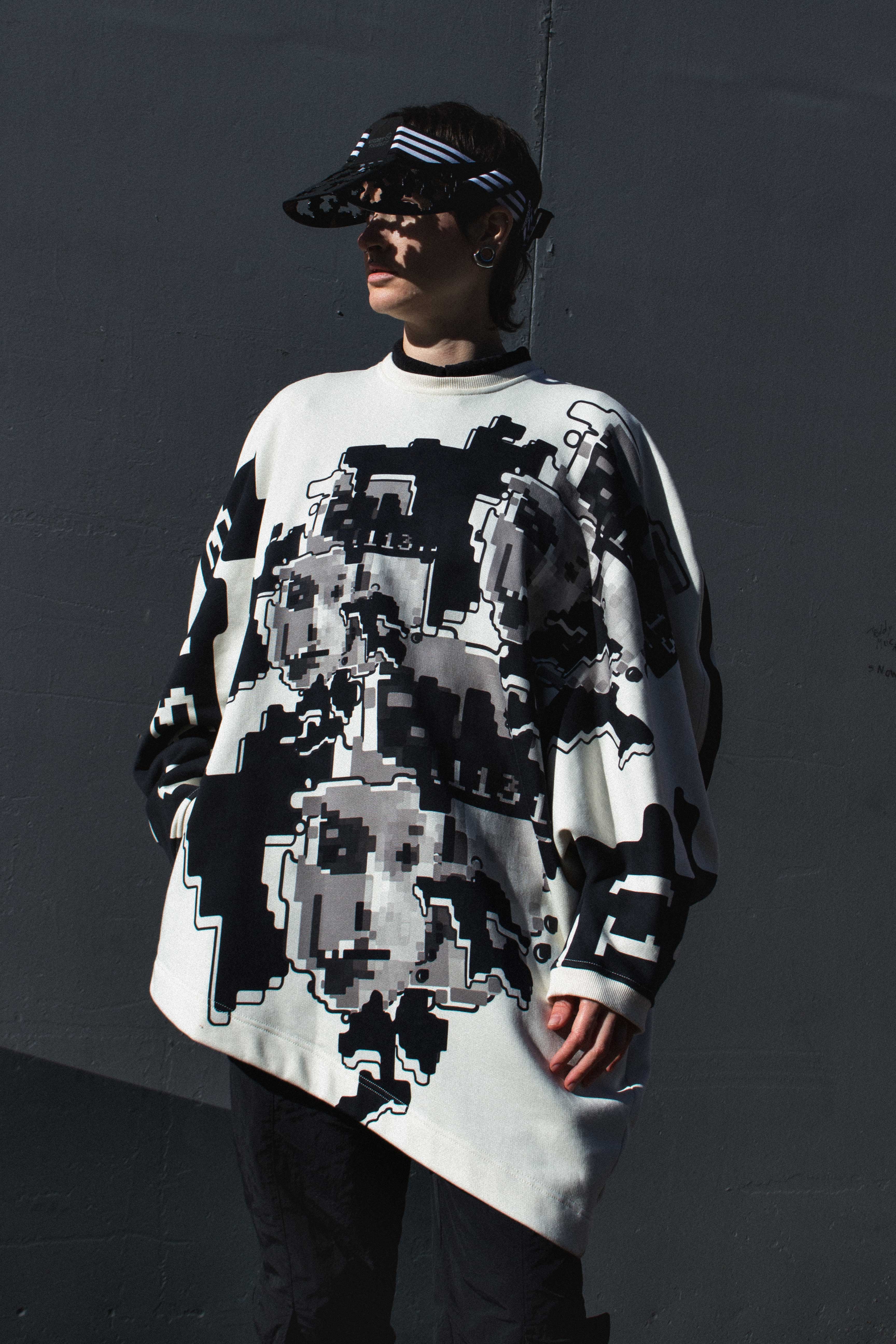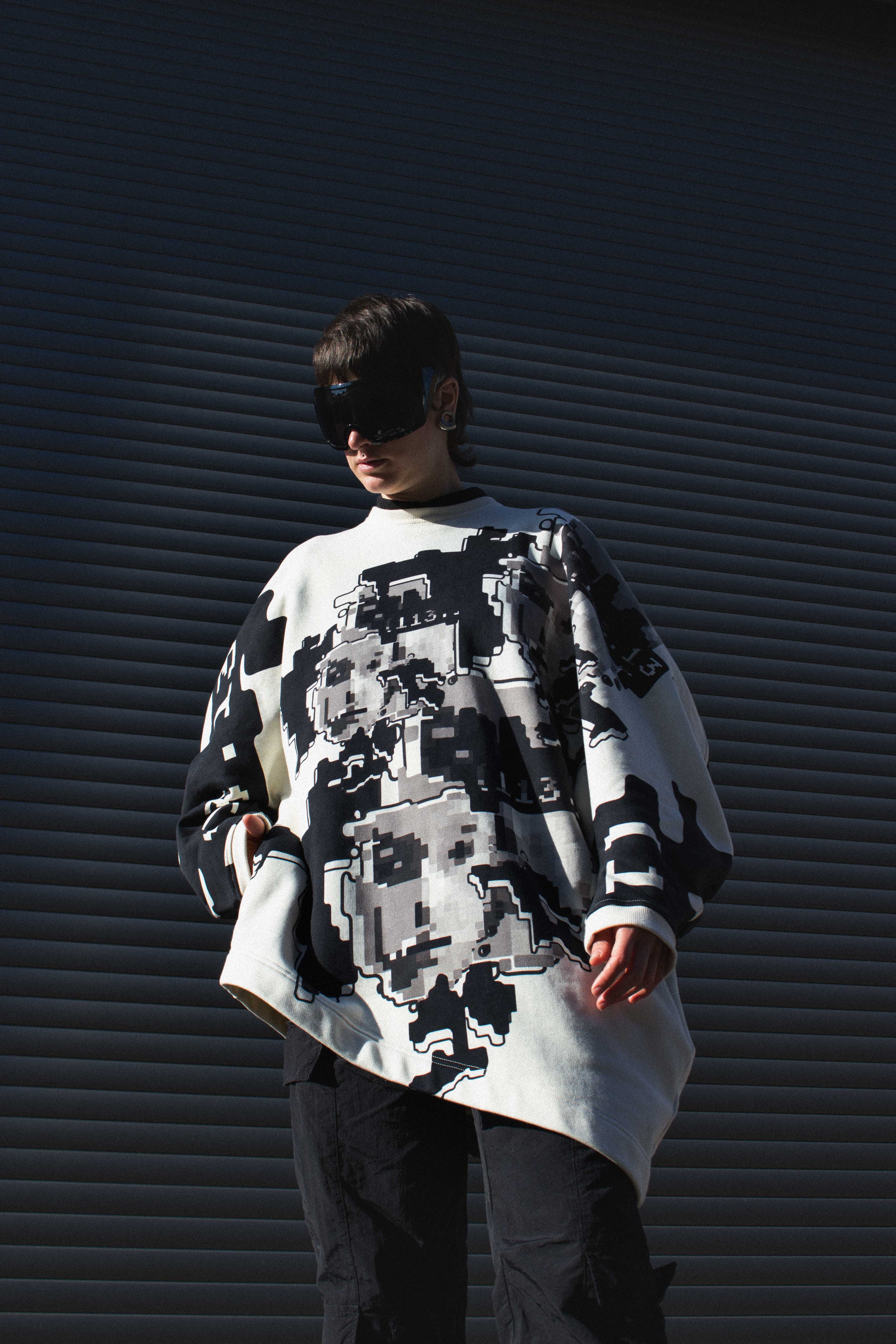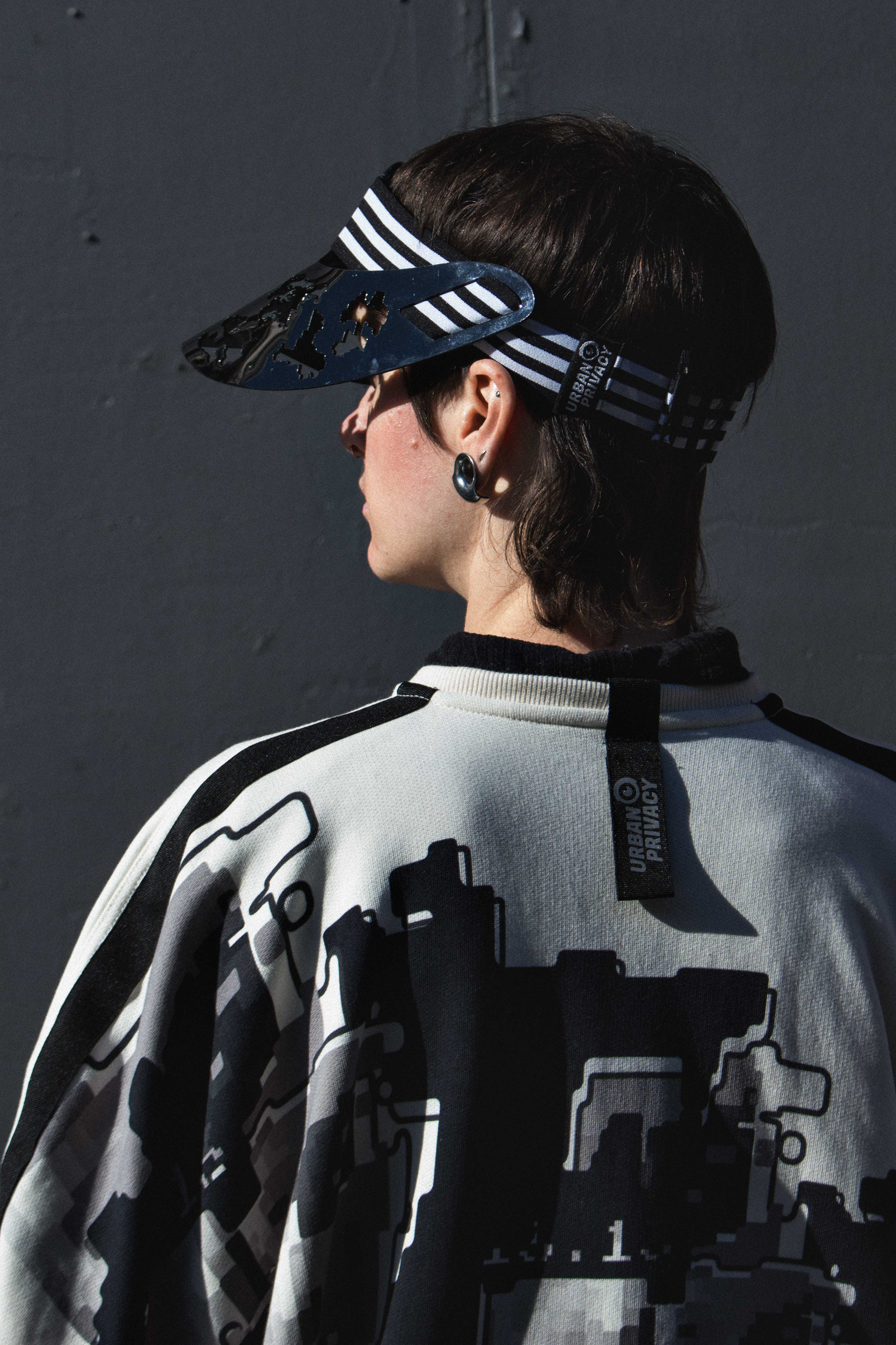 Biometrische Daten stecken nicht nur im Gesicht – Größe, Körperbau und sogar dein Gang verraten dich. FACEPTION RELOADED setzt deshalb auf weite, asymmetrische Schnitte und auffällige Prints, die deinen Körper clever verschleiern. Linien verschieben sich, Konturen verschwimmen – für Menschen ein stylischer Look, für Algorithmen schwer zu lesen.