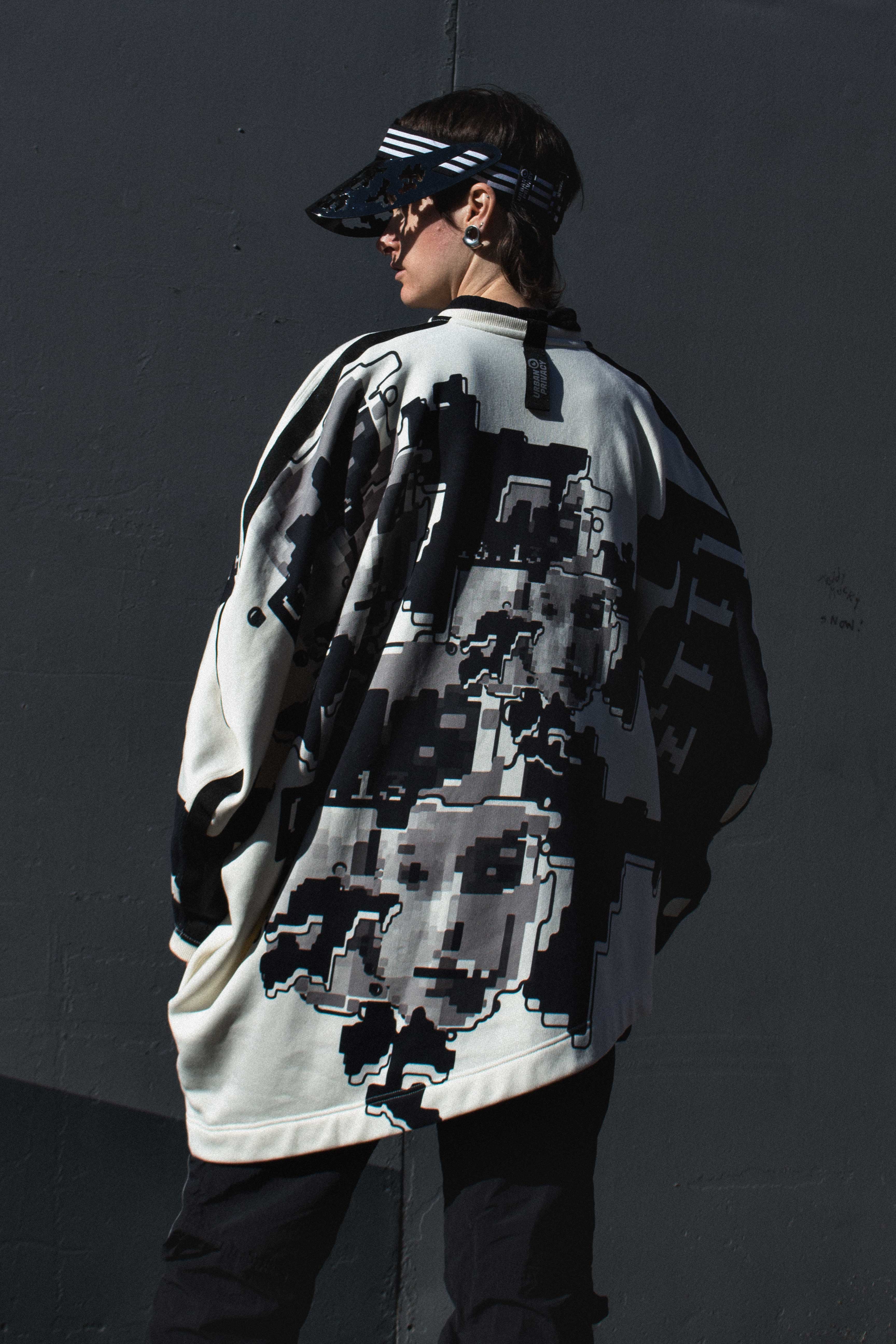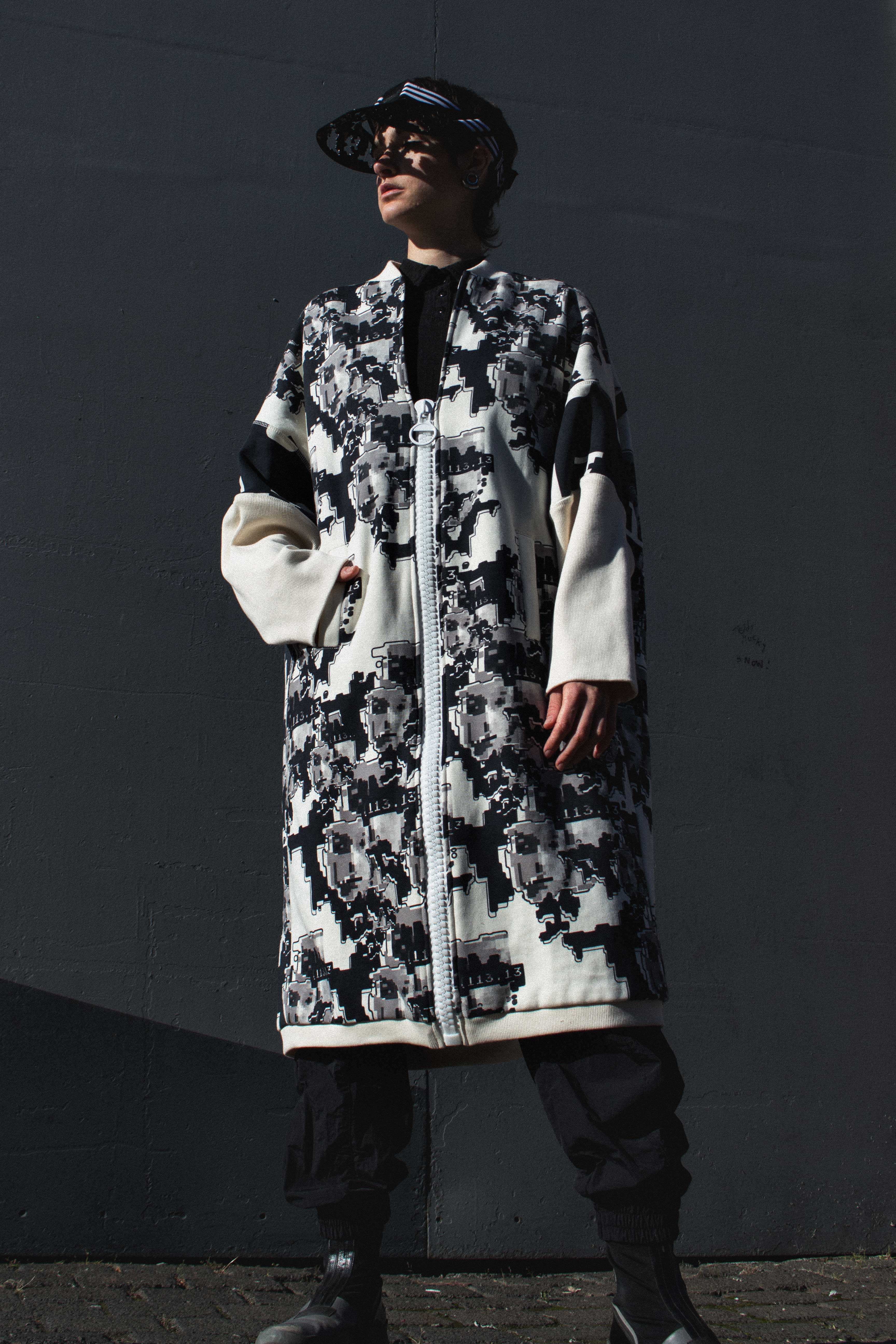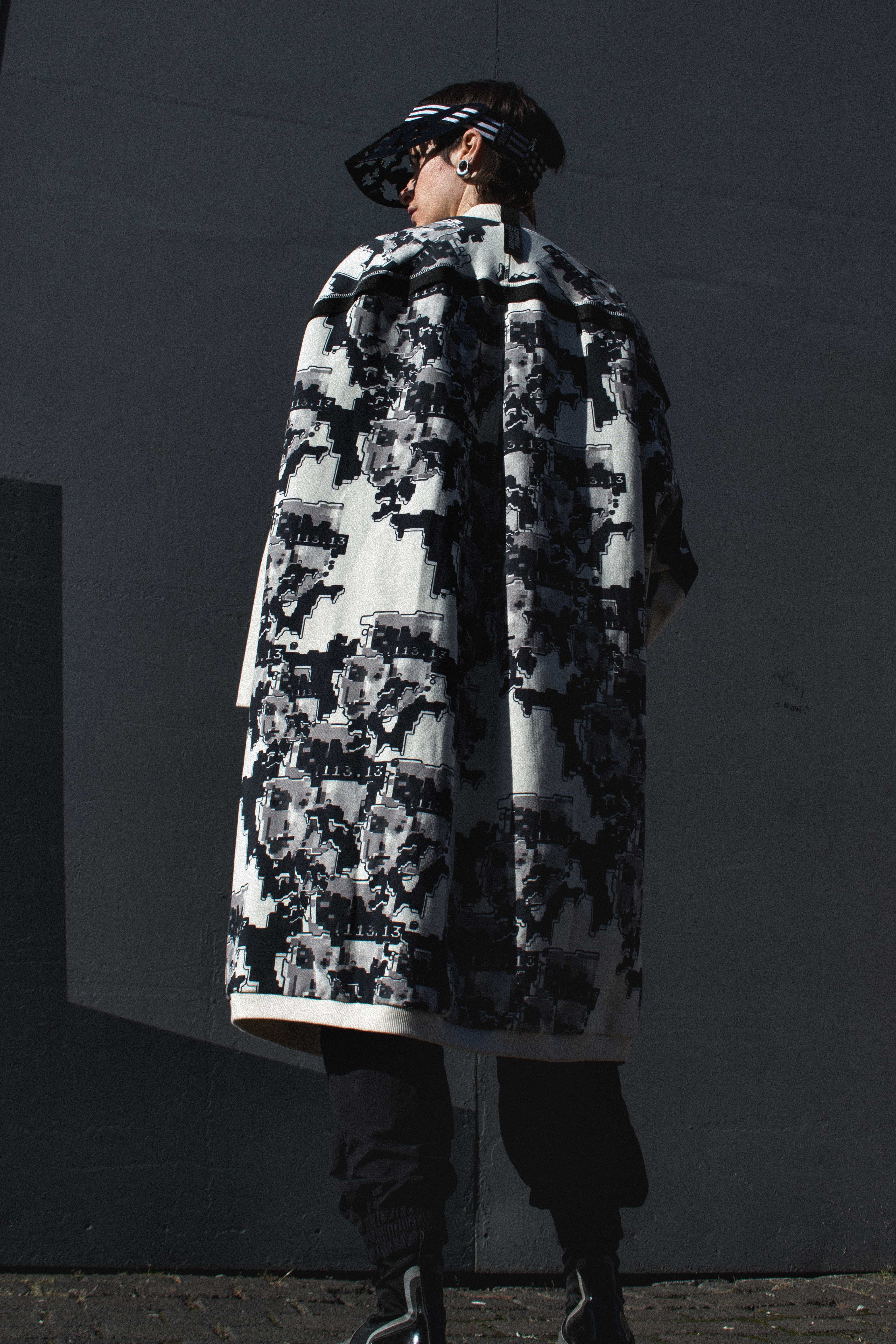 Unsere neue Kollektion bringt digitale Tarnung auf ein neues Level. Neue Prints spielen mit Algorithmen und täuschen die Wahrnehmung – oversized Silhouetten, clevere Details und ein markantes Signature-Print, das Identität hinterfragt.